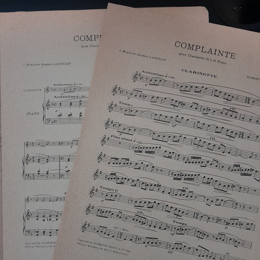 Albert Beaucamp Complainte pour clarinette en sib et piano