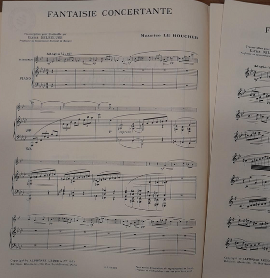 Le Boucher Maurice Fantaisie Concertante pour clarinette et piano