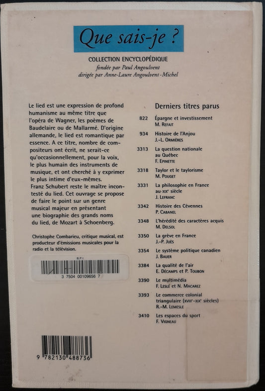 Le Lied, collection "Que sais-je?" livre de Christophe Combarieu