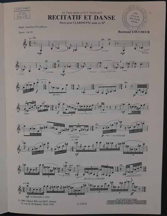 Raymond Loucheur Récitatif et danse pour clarinette seule