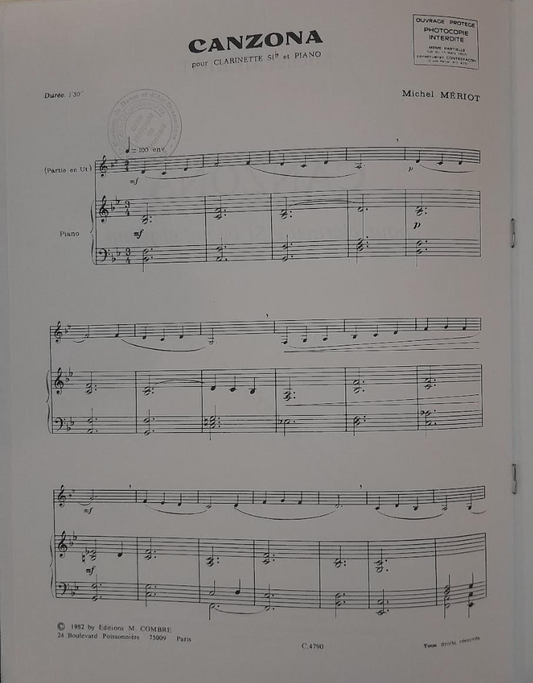 Michel Mériot Canzona pour clarinette et piano