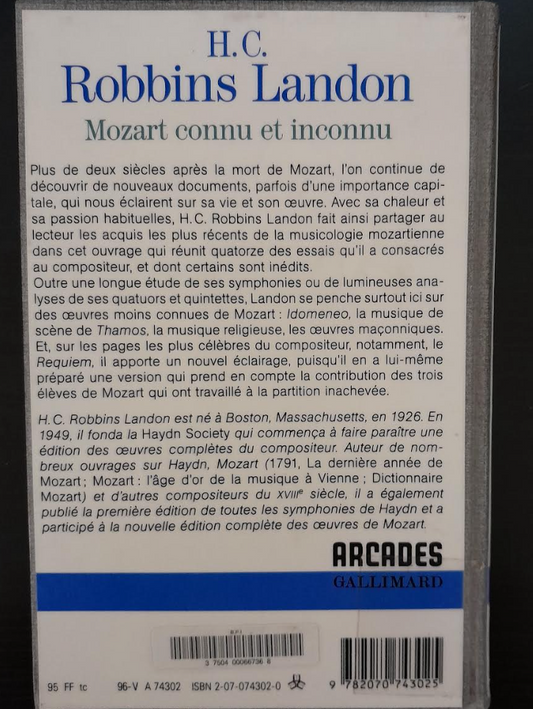 Mozart connu et inconnu Livre de Robbins Landon H.C.