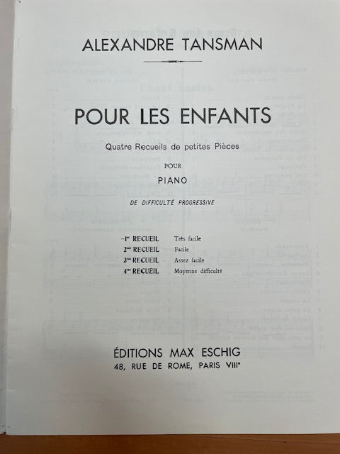 Alexandre Tansman Pour les enfants 1er recueil, très facile pour piano