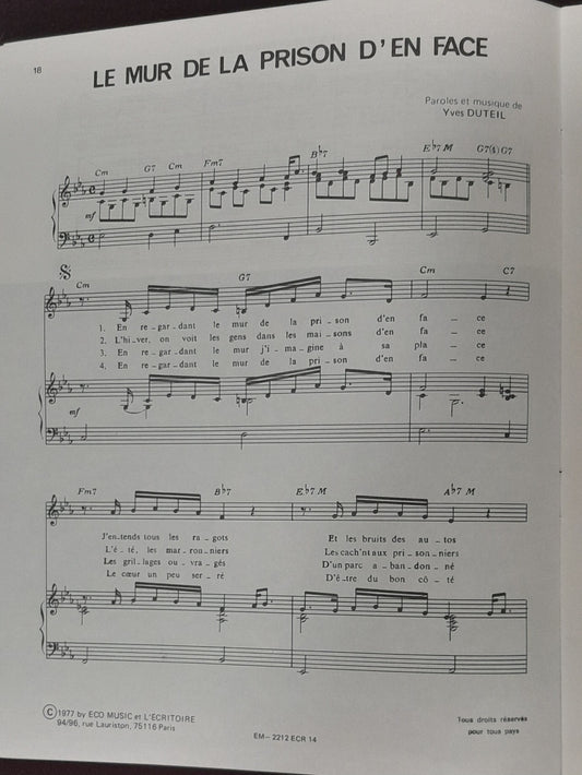 Songbook Yves Duteil volume 2 pour piano voix et guitare