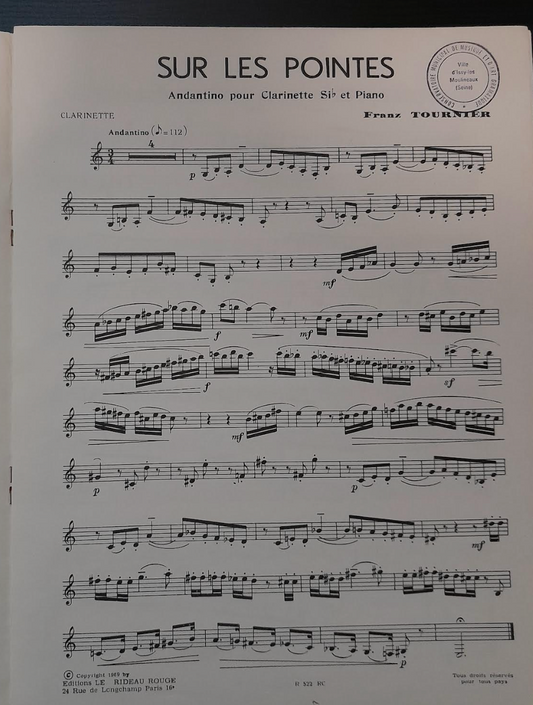 Franz Tournier Sur les pointes - Andantino pour clarinette en si b et piano
