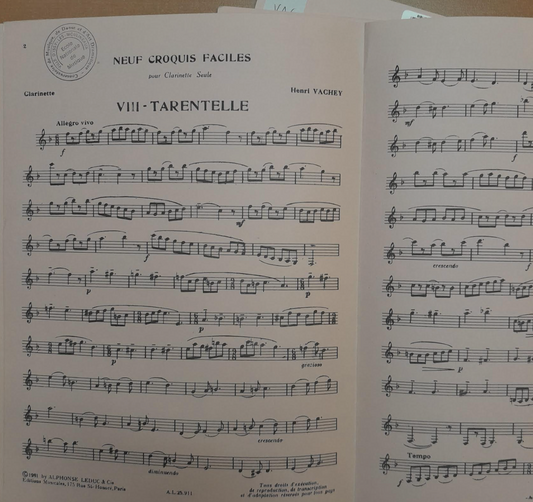 Henri Vachey Neuf croquis faciles pour clarinette seule (les 9 pièces vendues ensemble)