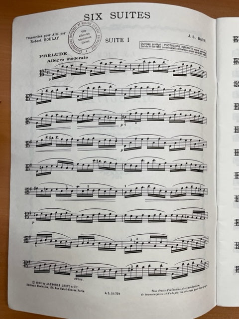Bach J.S Six suites, transcrites pour alto par Robert Boulay éditions Leduc