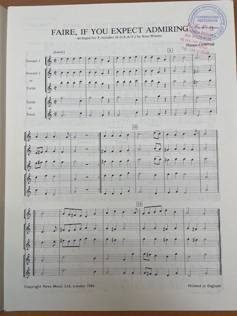 4 Madrigals arranged by Ross Winters - pour trios et quatuors de flûtes à bec