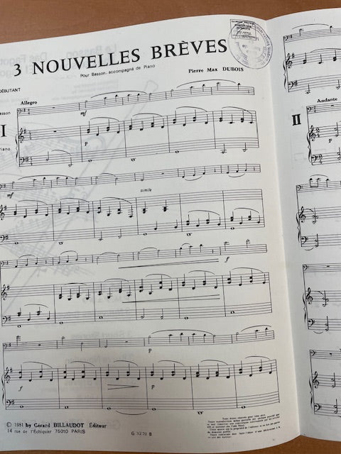Pierre Dubois 3 nouvelles brèves pour basson et piano