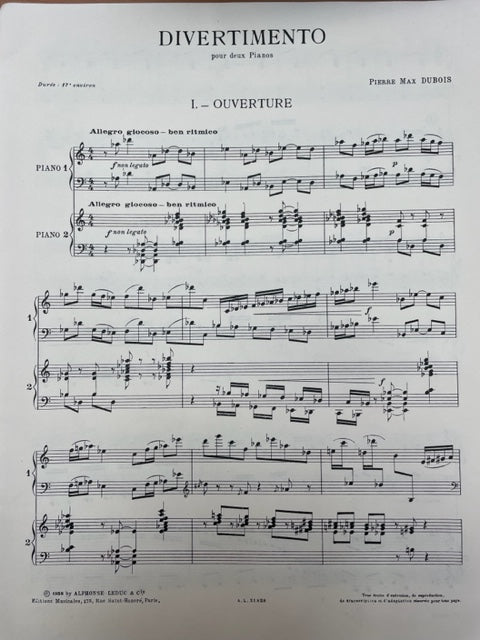 Pierre Max Dubois Divertimento partition pour 2 pianos