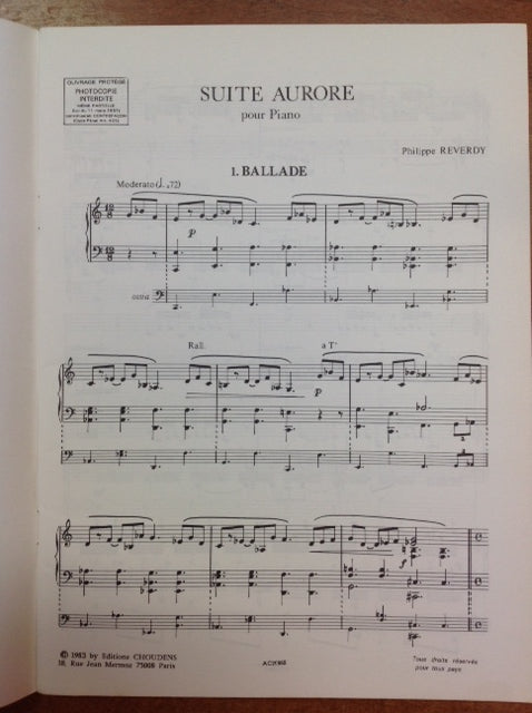 Philippe Reverdy Aurore - Pièces concertantes pour piano pour la classe de danse