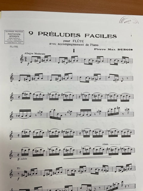 Pierre Max Dubois Neuf préludes faciles partition pour flute et piano
