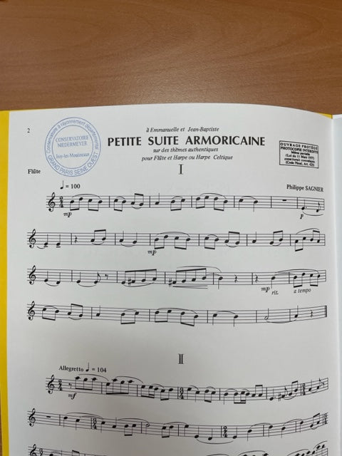 Philippe Sagnier Petite suite armoricaine sur des thèmes authentiques partition pour flute et piano