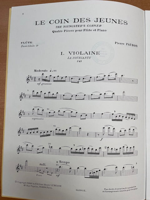Pierre Paubon Le coin des jeunes : 4 pièces pour flûte et piano