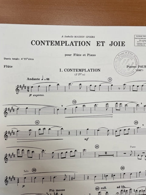 Pierre Paubon : Contemplation et joie partition pour flute et piano