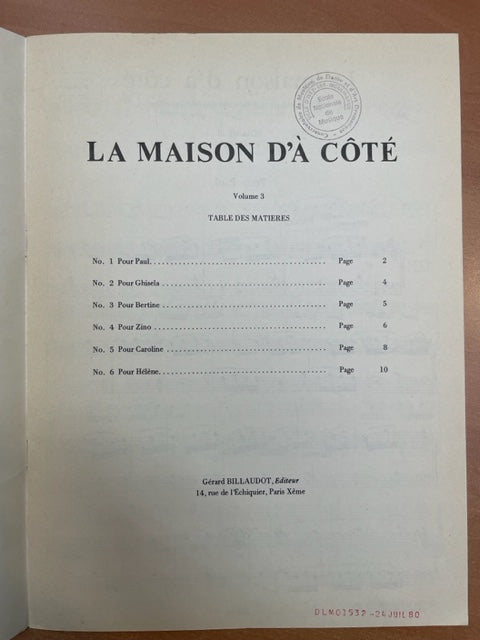 Pierre-Max Dubois La maison d'à côté volume 3 partition piano