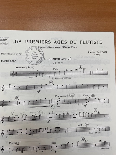 Pierre Paubon : Les premiers âges du flûtiste partition pour flute et piano