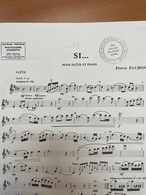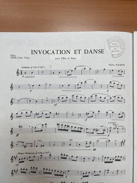 Pierre Paubon Invocation et danse partition pour flute et piano