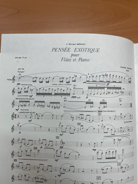 Pierre Paubon Pensée exotique partition pour flute et piano