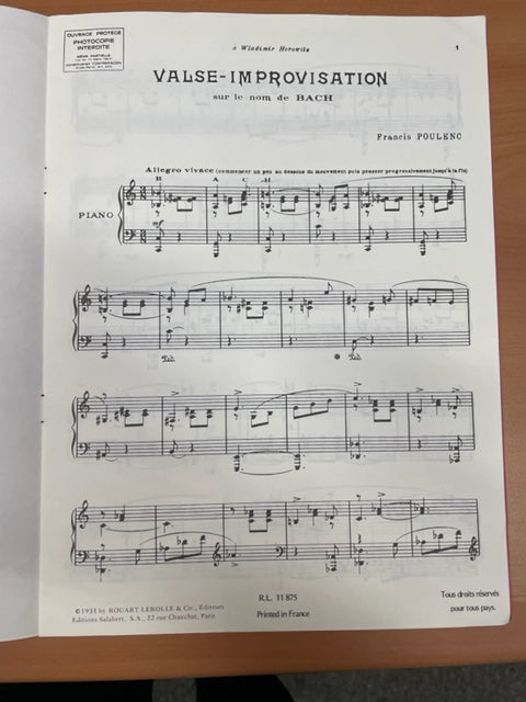 Poulenc Francis Valse - Improvisation Sur le nom de Bach partition piano
