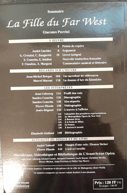 Puccini La fille du Far West. Revue " Avant-scène" opéra n° 165