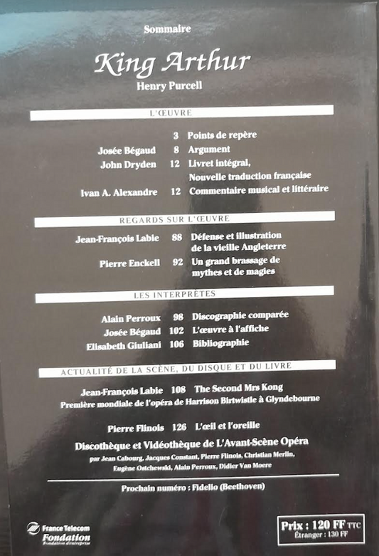 Purcell King Arthur. Revue "Avant-scène" opéra n° 163