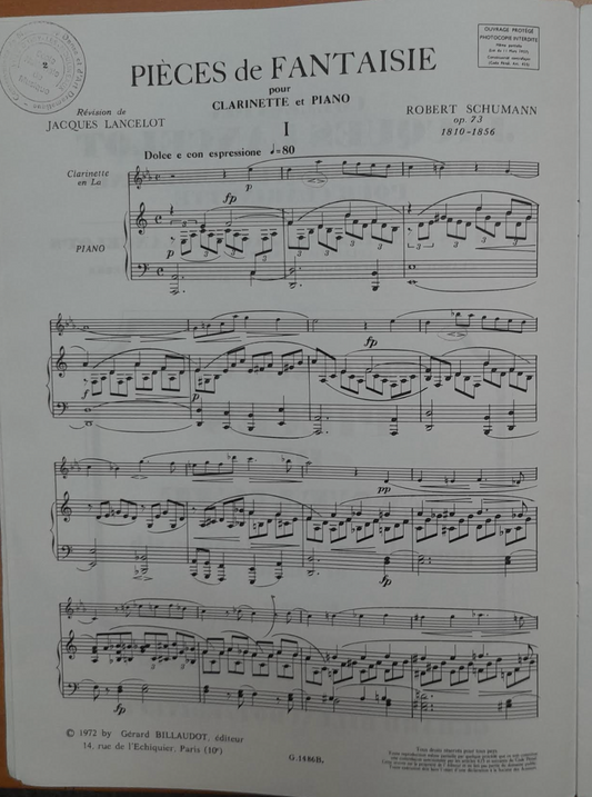 Robert Schumann Pièces de fantaisie pour clarinette en la ou en si b et piano
