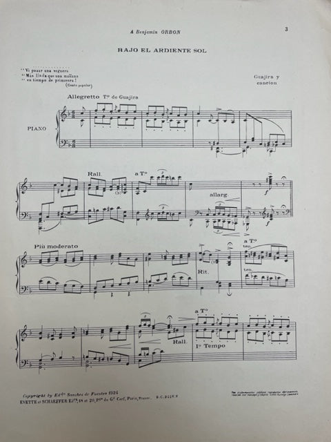 Sanchez de Fuentes Bajo el Ardiente sol partition piano