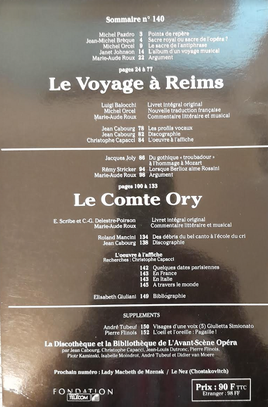 Rossini Le voyage à Reims - Le Comte Ory. Revue "Avant-scène"opéra n°140