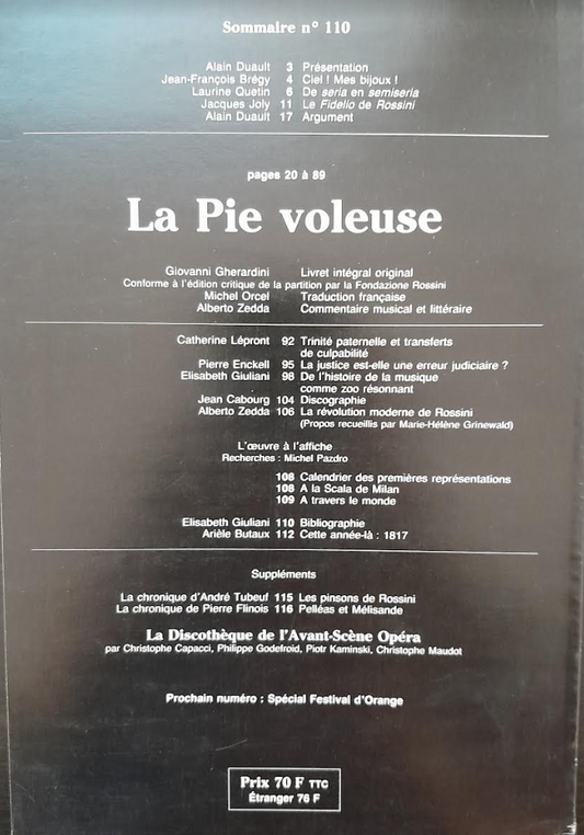 Rossini La pie voleuse Revue Avant-scène opéra n° 110