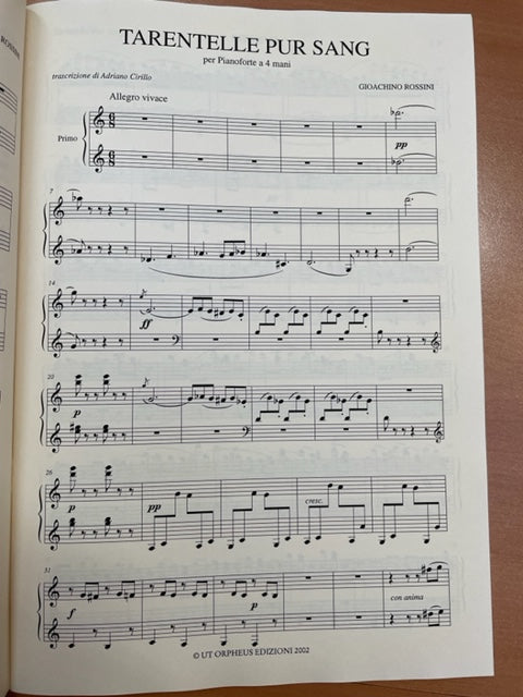 ROSSINI Gioachino Tarentelle pur sang partition transcrite pour piano à 4 mains