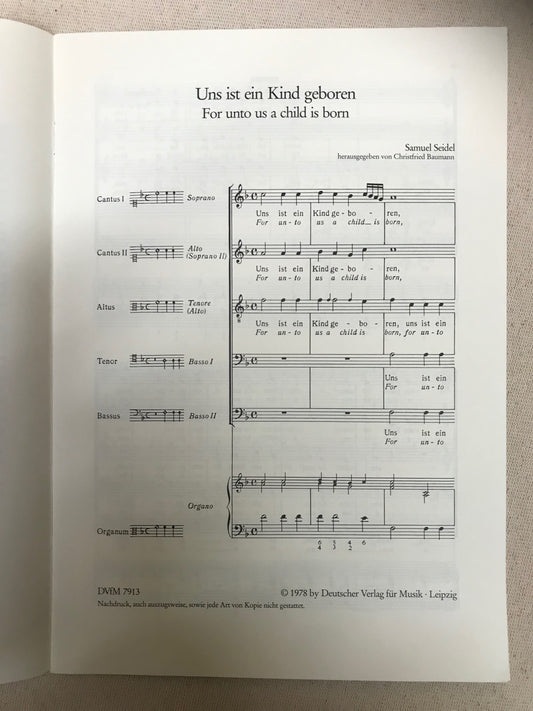 Samuel Seidel Uns ist ein Kind geboren, partition pour choeur