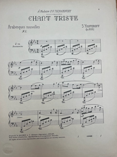 Serge Youferoff Arabesques nouvelles n°1 - Chant triste opus 39 n°1 partition piano