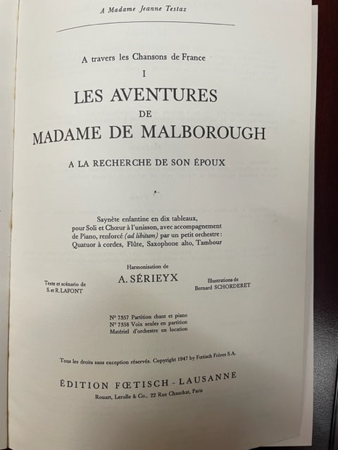 Sérieyx à travers les chansons de France volume 1 : Les aventures de Madame de Malborough