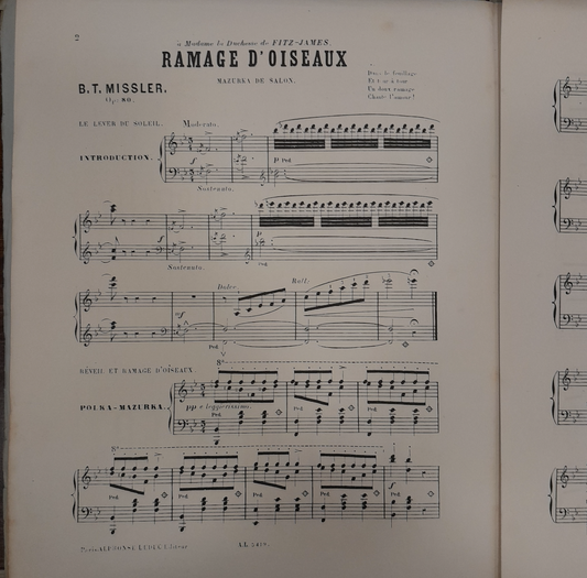 Traugott-Benjamin Missler Ramage d'oiseaux opus 80, mazurka de salon partition piano