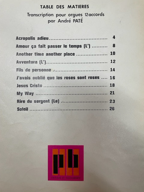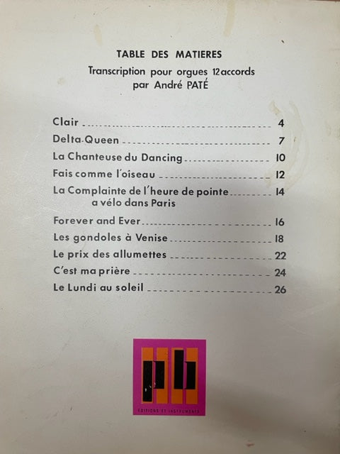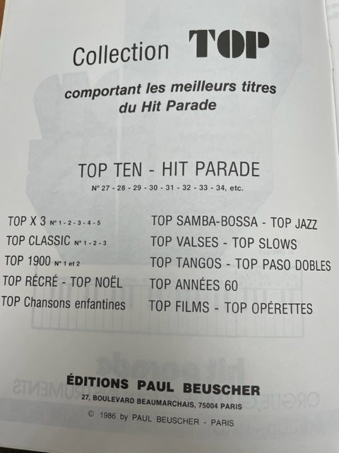 Top Ten 33 Hit parade songbook pour orgue, guitare et autres instruments