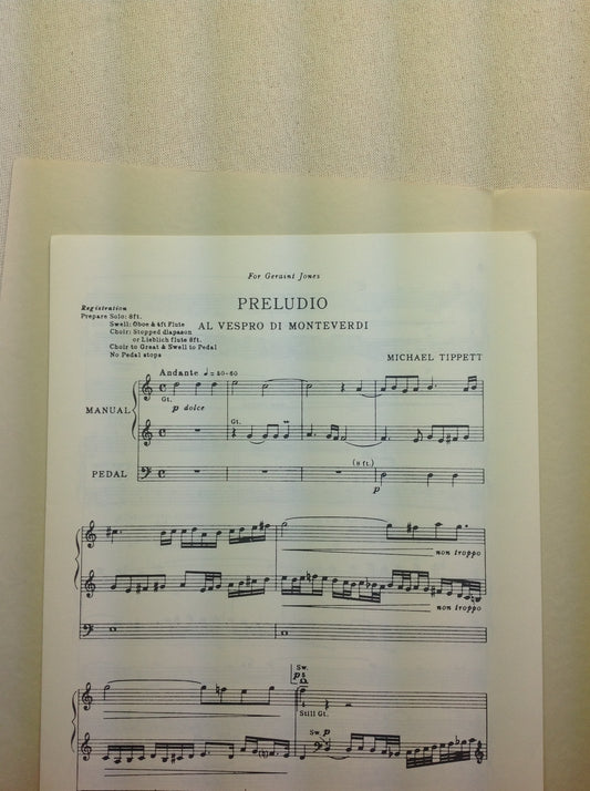 Tippett Michael Preludio al Vespro di Monteverdi, partition pour orgue et pédalier