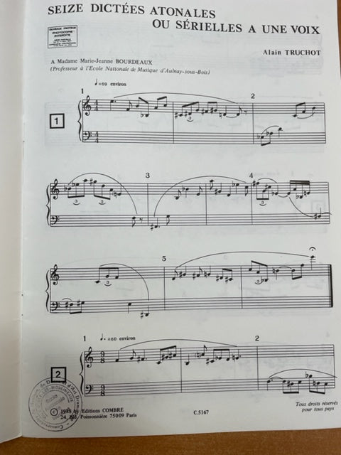 Truchot Alain 16 dictées atonales et sérielles à une voix suivies de 16 dictées à 2 voix