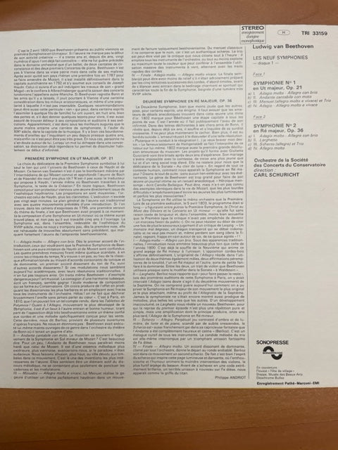 Vinyle Beethoven Symphonies n°1 & n° 2 Carl direction Carl Schuricht