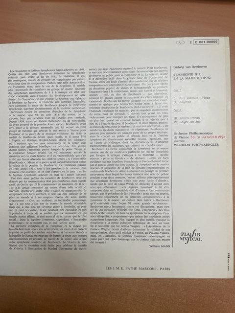 Vinyle Beethoven Symphonie n°7 en la majeur opus 92 direction W.Furtwangler