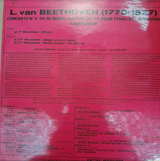 Vinyle Beethoven Walter Gieseking Concerto n°5 pour piano et orchestre "L'empereur"