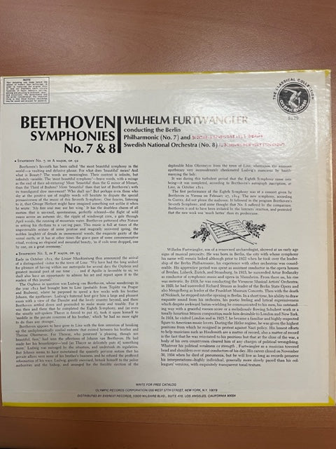 Vinyle Beethoven Symphonies n° 7 et 8 direction Wilhelm Fürtwangler