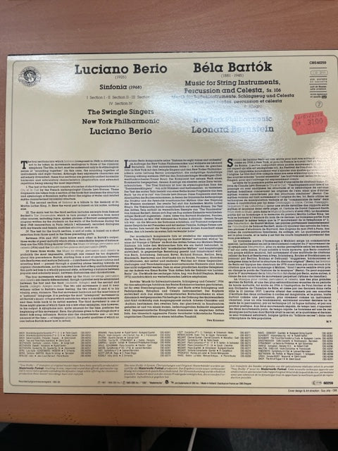 Vinyle Berio Sinfonia et Bartok Music for Strings, Percussion and Celesta