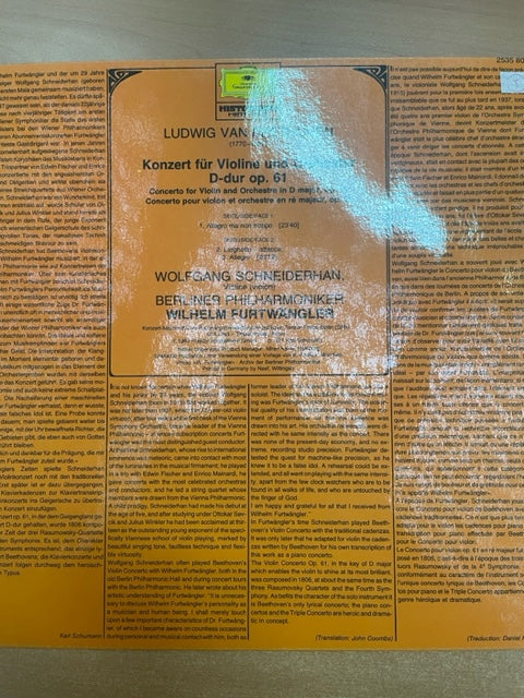 Vinyle Beethoven Wolfgang Schneiderhan Concerto pour violon et orchestre en ré majeur op.61