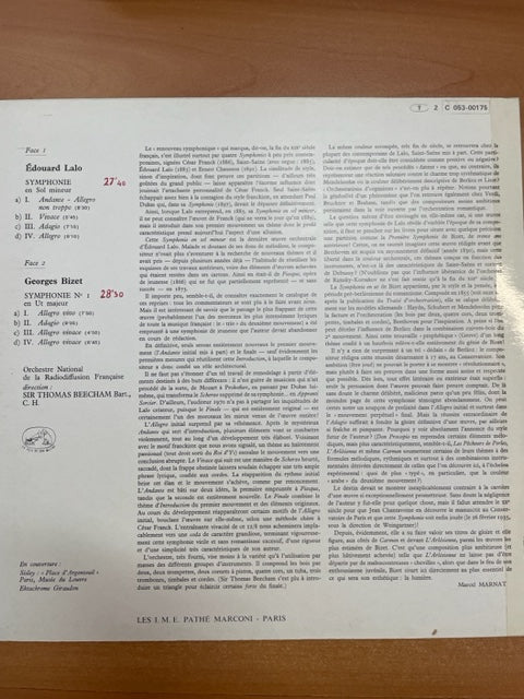 Vinyle Bizet - Lalo Symphonie En Ut Majeur - Symphonie En Sol Mineur