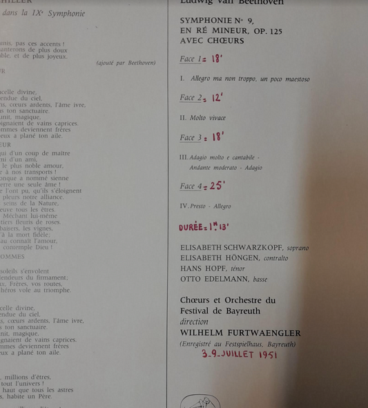 Vinyle Beethoven Symphonie n°9 avec choeurs dirigé par Fürtwängler