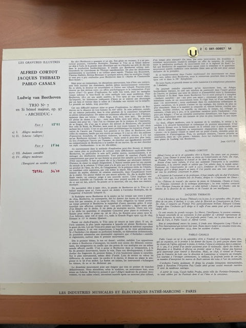 Vinyle Beethoven Trio en si bémol majeur "Archiduc" opus 97