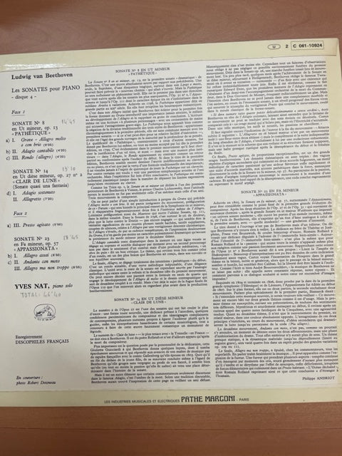 Vinyle Beethoven Sonates n°8 Pathétique, n° 14 Clair de lune, n°23 Appassionata