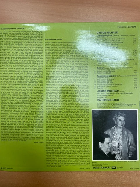 Vinyle Darius Milhaud Cantate Nuptiale - Chansons de RonsardDistributeur :Éditions EMIPrix habituel €8,00 EURPrix habituelPrix unitaire par-