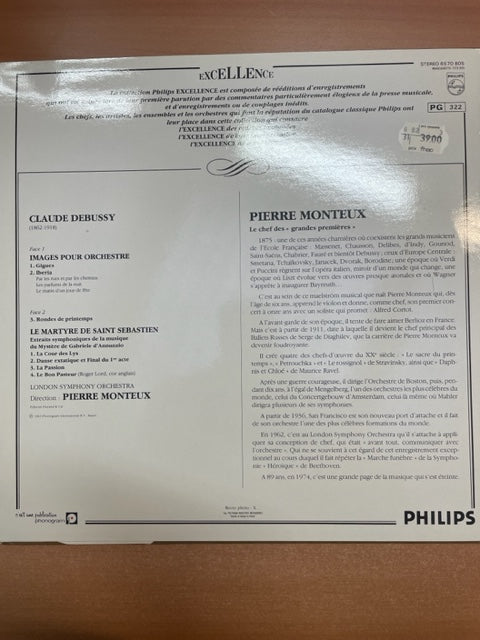 Vinyle Claude Debussy Images pour orchestre - Le Martyre de Saint Sébastien direction Pierre MonteuxDistributeur :Editions PhilipsPrix habituel €8,00 EURPrix habituelPrix unitaire par-